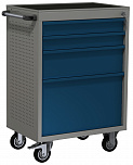 Для размещения и хранения подручного инструмента. Оснащена поворотными прорезиненными колесами размером 4" х 1" (2 колеса оборудованы тормозом). 2 стальные боковые ручки. 3 полки (грузоподъемность каждой полки 40 кг).