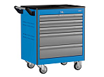 5 ящиков. Для хранения инструмента в ЕВРОЛОЖЕМЕНТАХ. Боковые панели с перфорацией (для установки аксессуаров). Цельносварная конструкция корпуса тележки. Центральный замок Euro-Lock. Шариковые направляющие полного выдвижения. Размеры (высота x ширина x глубина): 850 х 700 х 460 мм. Вес: 55 кг.
