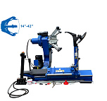 Для грузовых колес автомобилей с размерами обода от 14” до 26” и диаметром шин более 1600 мм. С адаптерами диаметр обслуживаемых дисков 14” до 42”. Особенности: портативный блок управления, самоцентрирующиеся 4 захвата, двигатель высокого качества СЕ, усилие отжима 2500 кг