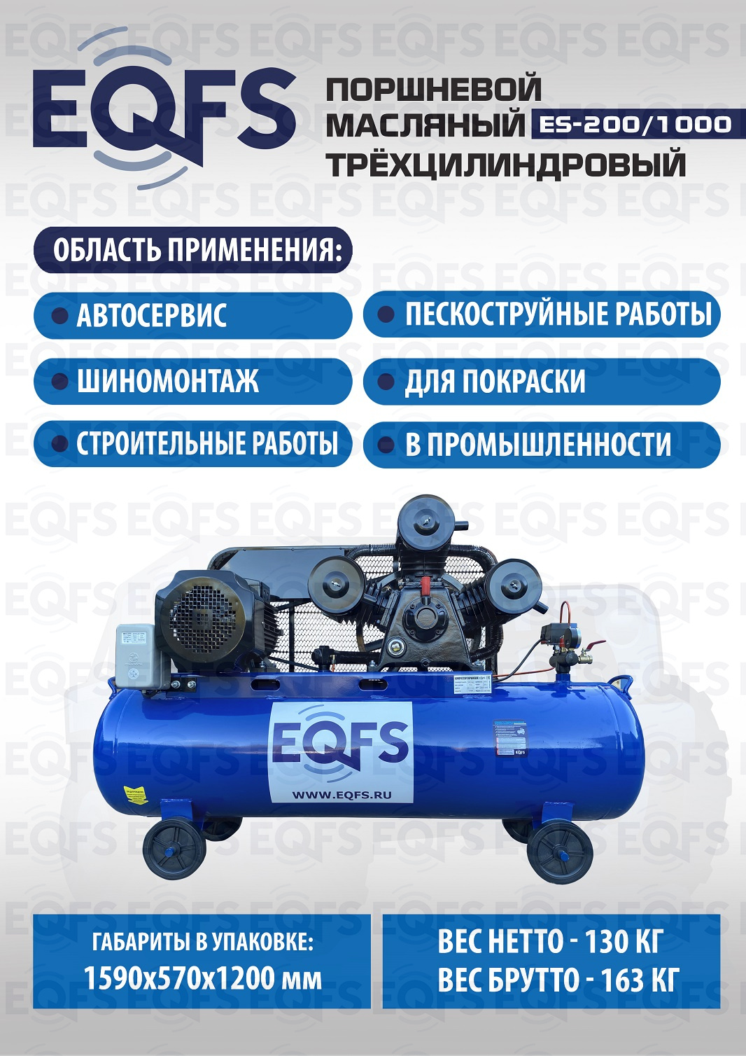 Компрессор воздушный, передвижной, поршневой, масляный, трёхцилиндровый. Быстро достигает нужного давления. Трёхпоршневая головка двигателя уменьшает износ деталей и увеличивает срок службы. Ременной привод — предохранят мотор от поломки. Идеальное решение для шиномонтажа, автосервиса, строительства, покраски, промышленности. Давление 8 Атм. Производительность 1000 л/мин. Мощность 7,45 кВт. Напряжение 380В. Ёмкость ресивера 200 л. Гарантия 12 месяцев.