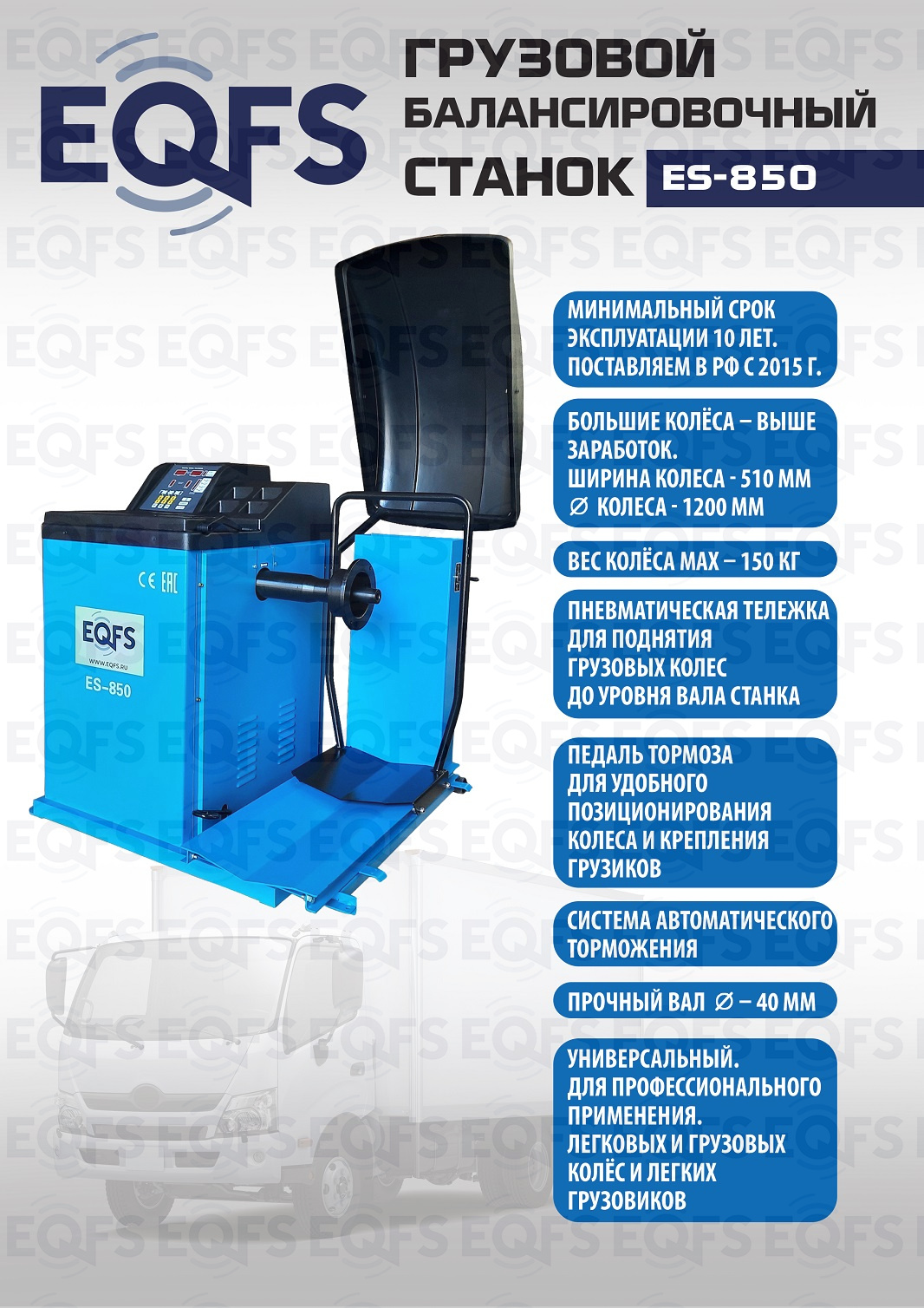 + ES-850 Балансировочный станок для балансировки колес легковых и грузовых автомобилей. Колесо «в сборе» Ø до 1200 мм, вес до 150 кг. Диски Ø 13-24” ширина 1,5-20”, подключение 380 В. Встроенный пневмоподъемник. Гарантия до 18 мес.