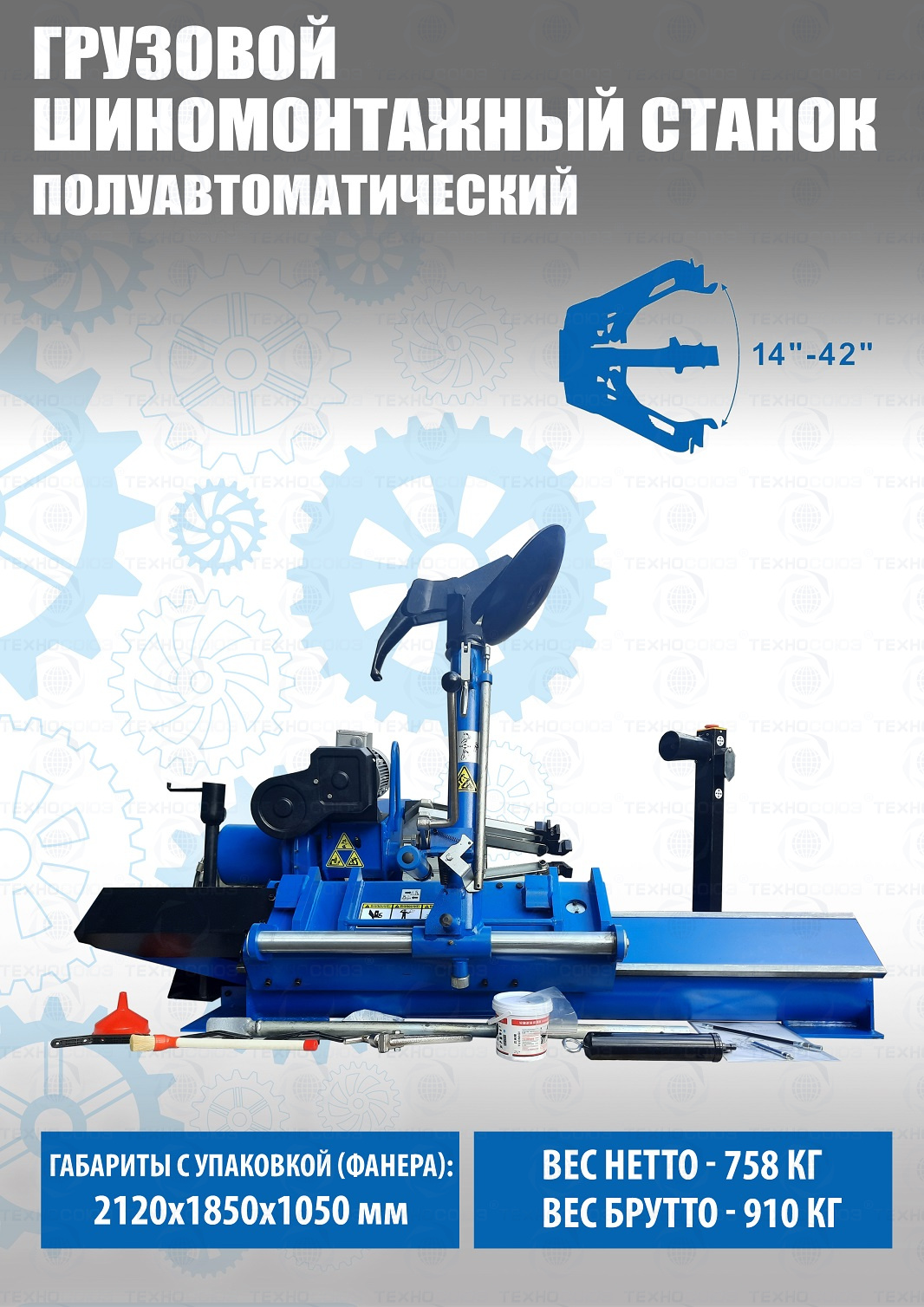 Комплект из TS-52D грузового шиномонтажного станка для дисков 14”-42”, с удлинителями на захваты до 52” - очень качественный станок. За последние 9 лет ни одной рекламации!!! Диски сталь + ALU Ø 14÷42” с адаптерами 14÷52”(опция). Автомат. Максимальное колесо Ø2300 ширина1050мм, вес до 1600кг. Моторы 2,2 + 2,2 кВт, 380В. Гарантия 12÷18мес. Гидронасос «BUCHER HIDRAULICS». Cтанок подходит для тракторов, сельхозтехники, еврофур и т.п. + ЛС-32 MAXY P Универсальный грузовой балансировочный станок для колес диаметром от 10 до 30 дюймов, имеет две программы для работы с легковыми и грузовыми колесами. Максимальный вес колеса до 200 кг. Оснащен функциями автокалибровки и самодиагностики.В стандартный комплект входит набор конусов для установки колес легковых автомобилей, микроавтобусов и легковых грузовиков типа "Газель", а также универсальный адаптер для установки колес большинства типов грузовых автомобилей. Для установки тяжелых колес ЛС 32 MAXIP комплектуется подкатной тележкой с пневматическим подъемным механизмом. Внесен в реестр средств измерений России Казахстана и Респ. Беларусь